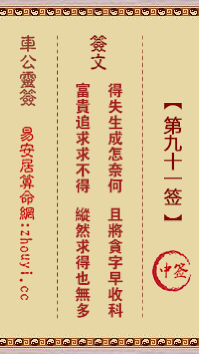 车公灵签第九十一签解签车公灵签 第九十一签:中签签文:得失生成怎奈何,且 ...