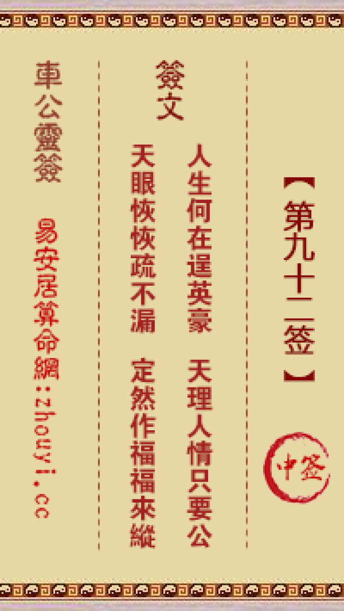 车公灵签第九十二签解签车公灵签 第九十二签:中签签文:人生何在逞英豪,天 ...