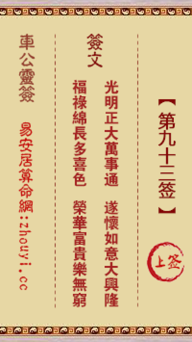 车公灵签第九十三签解签车公灵签 第九十三签:上签签文:光明正大万事通,遂 ...