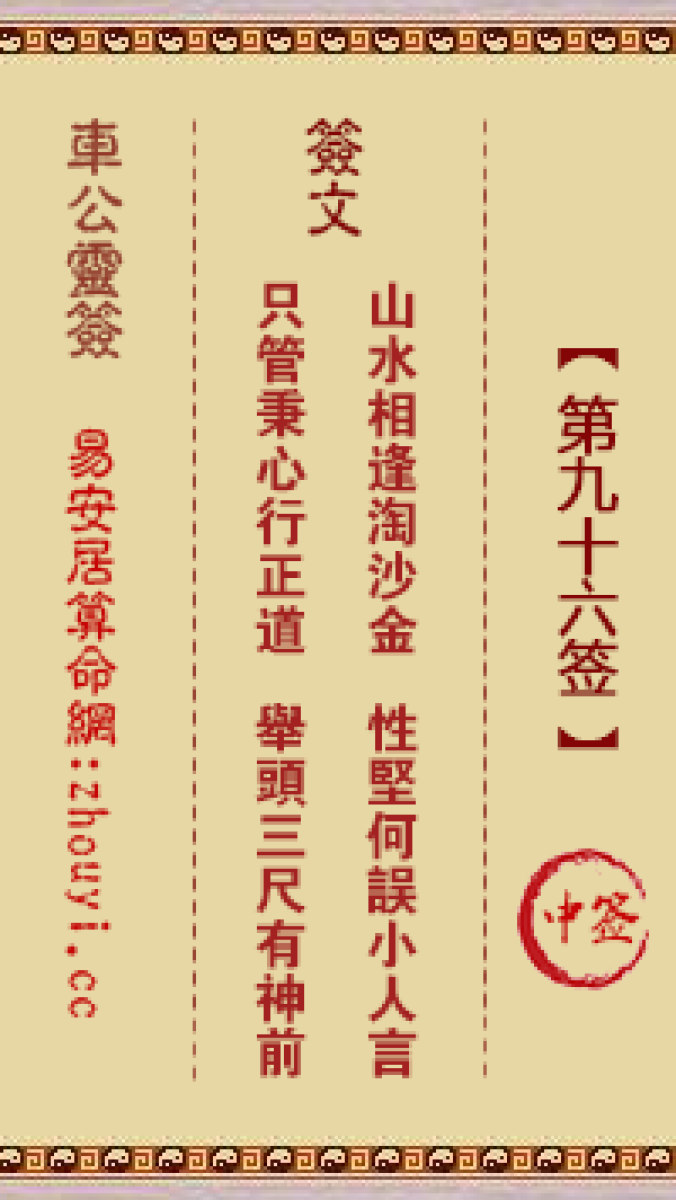 车公灵签第九十六签解签车公灵签 第九十六签:中签签文:山水相逢淘沙金,性 ...
