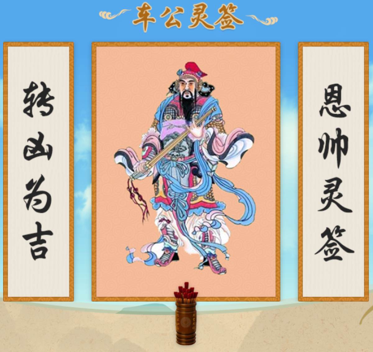 靈簽大全,包括觀音靈簽,關帝靈簽,易經六十四卦,佛祖靈簽,月老靈簽,黃大仙靈簽,呂祖靈簽,媽祖靈簽,玉帝靈簽等.靈簽抽簽是中國的民間習俗,是占蔔的一種形式.每一簽的簽詩都是一個典故,內容豐富多彩.