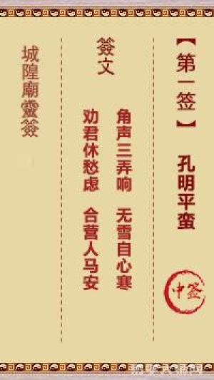 城隍庙灵签第一签,孔明平蛮,城隍庙灵签第1签解签