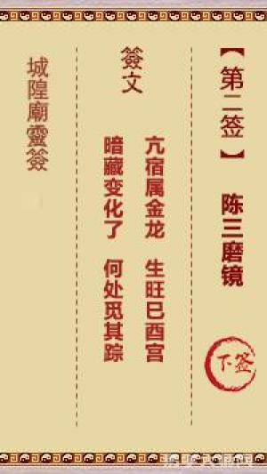 城隍庙灵签第二签,陈三磨镜,城隍庙灵签第2签解签