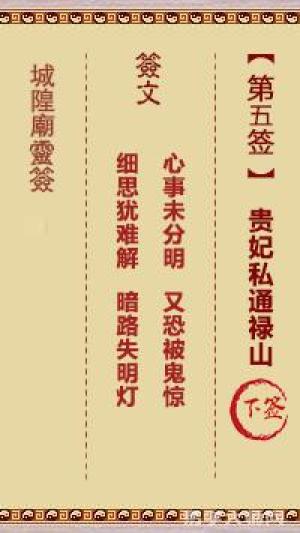 城隍庙灵签第五签,贵妃私通禄山,城隍庙灵签第5签解签