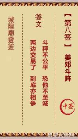 城隍庙灵签第八签,姜邓斗阵,城隍庙灵签第8签解签