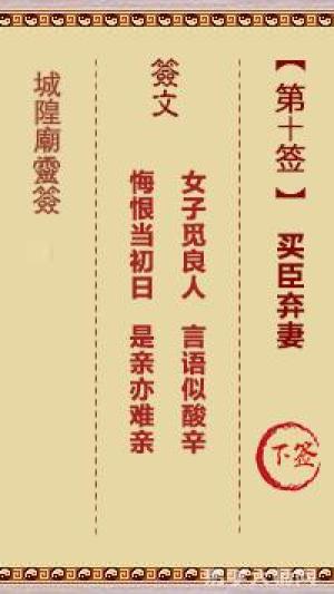 城隍庙灵签第十签,买臣弃妻,城隍庙灵签第10签解签