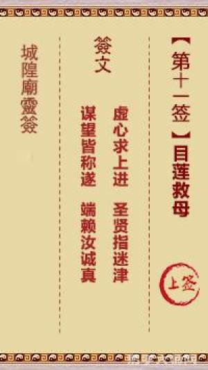 城隍庙灵签第十一签,目莲救母,城隍庙灵签第11签解签
