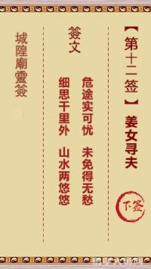 城隍庙灵签第十二签,姜女寻夫,城隍庙灵签第12签解签