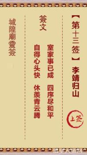 城隍庙灵签第十三签,李靖归山,城隍庙灵签第13签解签