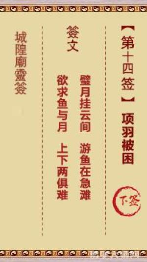 城隍庙灵签第十四签,项羽被困,城隍庙灵签第14签解签