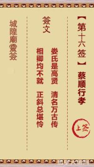 城隍庙灵签第十六签,蔡顺行孝,城隍庙灵签第16签解签