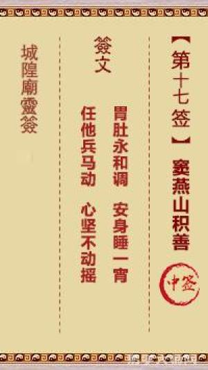城隍庙灵签第十七签,窦燕山积善,城隍庙灵签第17签解签