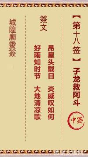 城隍庙灵签第十八签,子龙救阿斗,城隍庙灵签第18签解签
