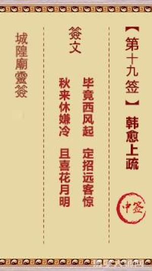 城隍庙灵签第十九签,韩愈上疏,城隍庙灵签第19签解签