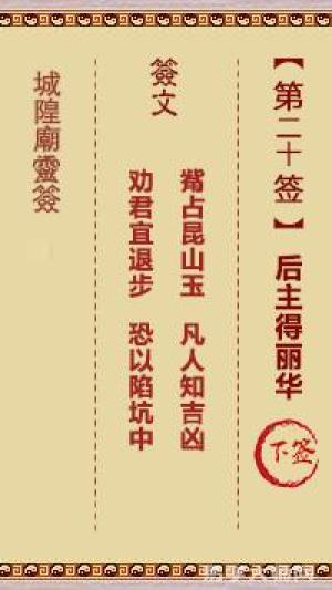 城隍庙灵签第二十签,后主得丽华,城隍庙灵签第20签解签