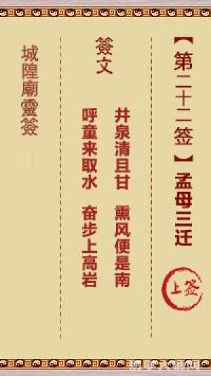 城隍庙灵签第二十二签,孟母三迁,城隍庙灵签第22签解签