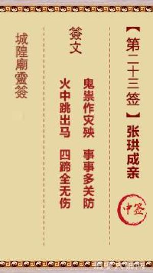 城隍庙灵签第二十三签,张珙成亲,城隍庙灵签第23签解签