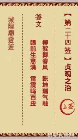 城隍庙灵签第二十四签,贞观之治,城隍庙灵签第24签解签