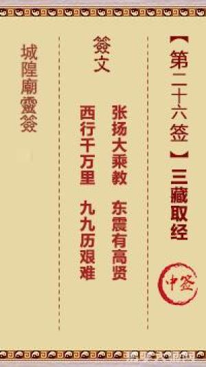 城隍庙灵签第二十六签,三藏取经,城隍庙灵签第26签解签