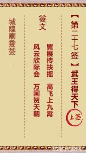 城隍庙灵签第二十七签,武王得天下,城隍庙灵签第27签解签