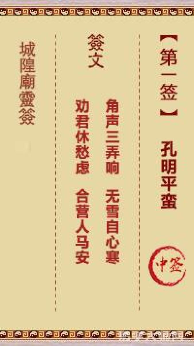 城隍庙灵签第一签解签城隍爷灵签 第一首 孔明平蛮 中签角声三弄响,无雪自心 ...