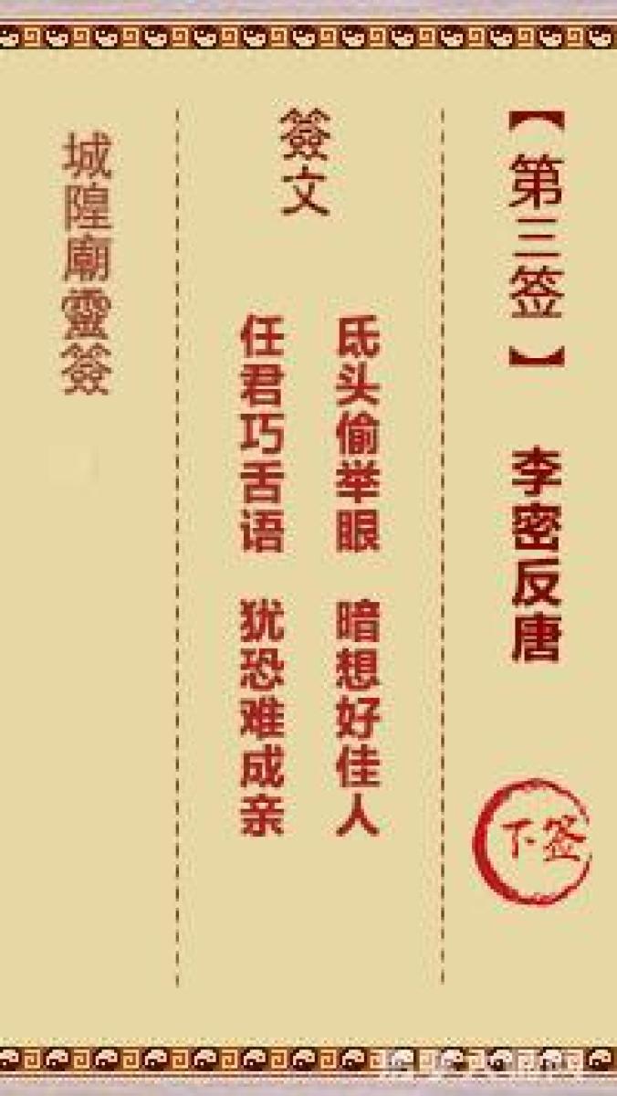 城隍庙灵签第三签解签城隍爷灵签 第三首 李密反唐 下签氐头偷举眼,暗想好佳 ...