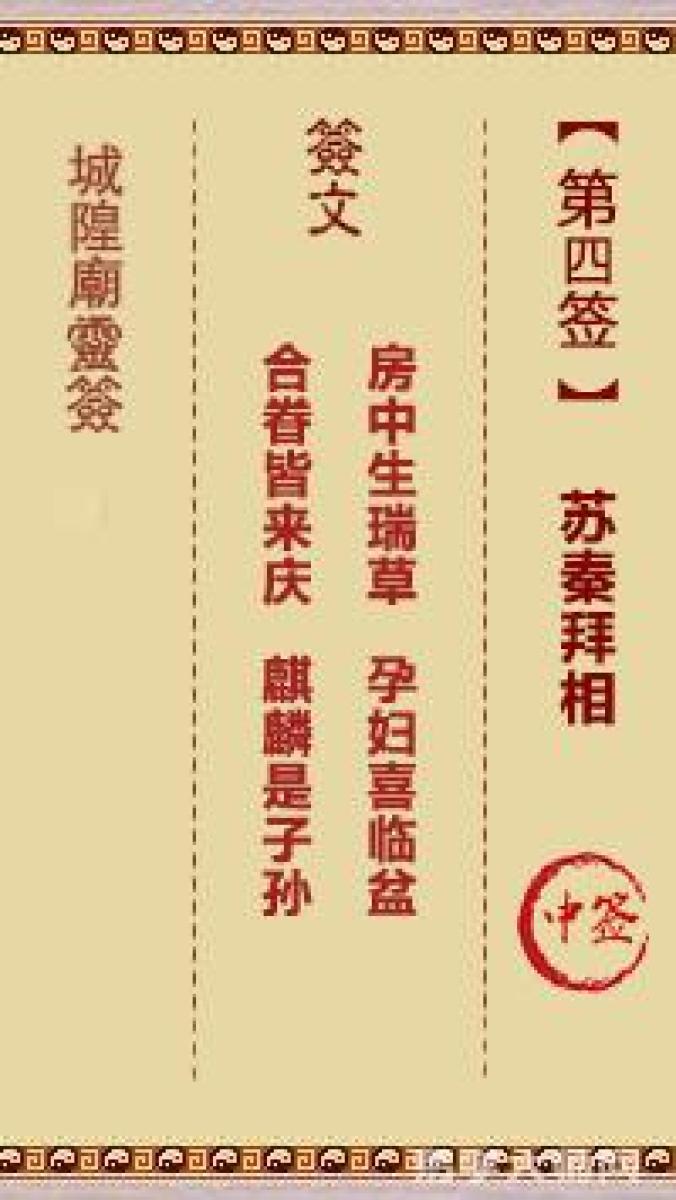 城隍庙灵签第四签解签城隍爷灵签 第四首 苏秦拜相 中签房中生瑞草,孕妇喜临 ...