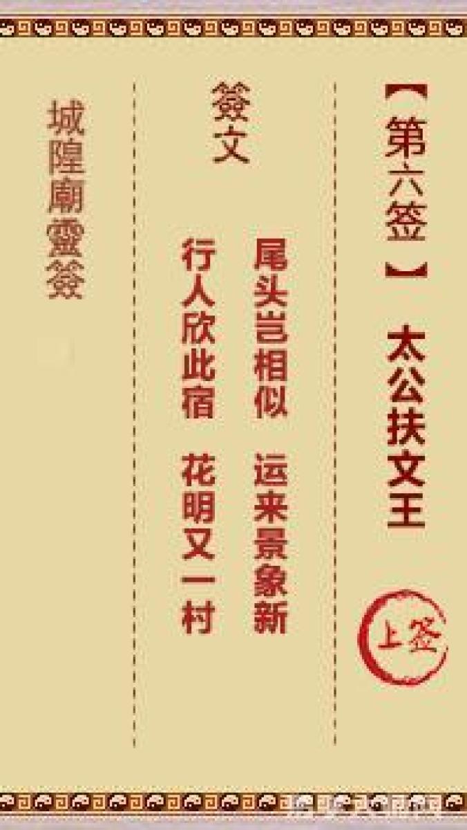 城隍庙灵签第六签解签城隍爷灵签 第六首 太公扶文王 上签尾头岂相似,运来景 ...