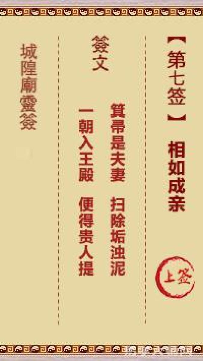 城隍庙灵签第七签解签城隍爷灵签 第七首 相如成亲 上签箕帚是夫妻,扫除垢浊 ...