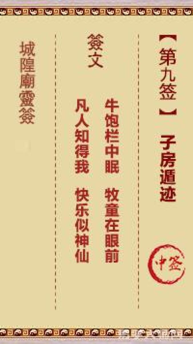 城隍庙灵签第九签解签城隍爷灵签 第九首 子房遁迹 中签牛饱栏中眠,牧童在眼 ...