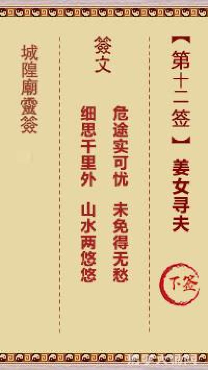 城隍庙灵签第十二签解签城隍爷灵签 第十二首 姜女寻夫 下签危途实可忧,未免 ...