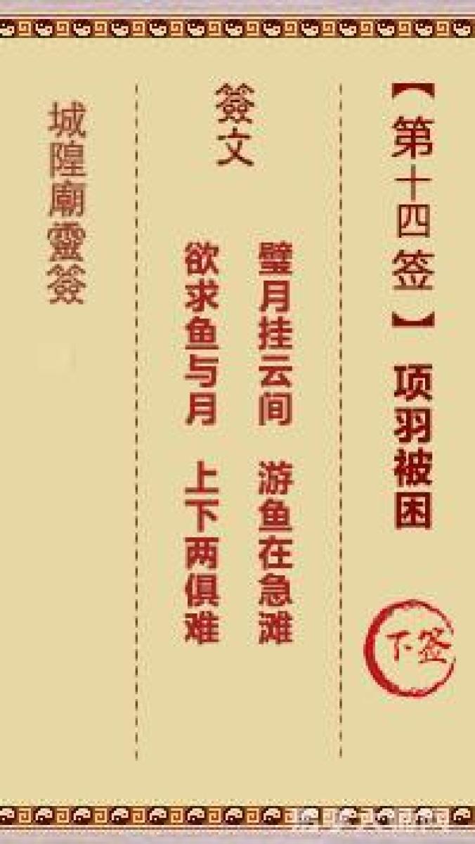 城隍庙灵签第十四签解签城隍爷灵签 第十四首 项羽被困 下签璧月挂云间,游鱼 ...