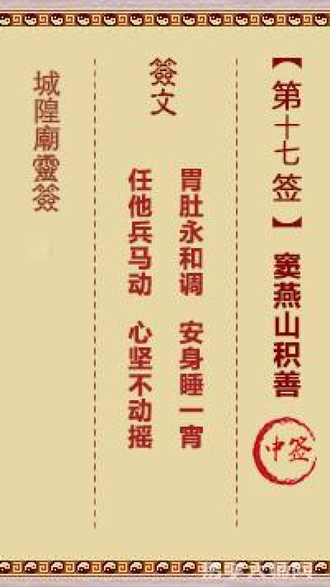 城隍庙灵签第十七签解签城隍爷灵签 第十七首 窦燕山积善 中签胃肚永和调,安 ...