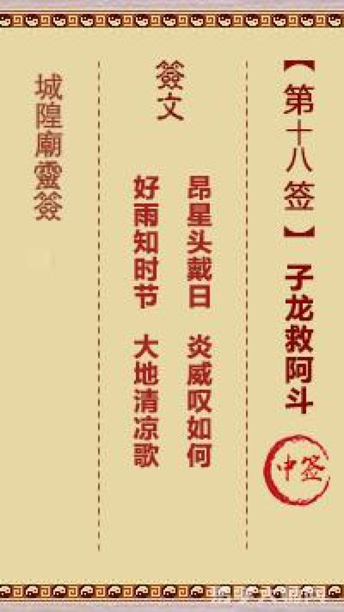 城隍庙灵签第十八签解签城隍爷灵签 第十八首 子龙救阿斗 中签昂星头戴日,炎 ...