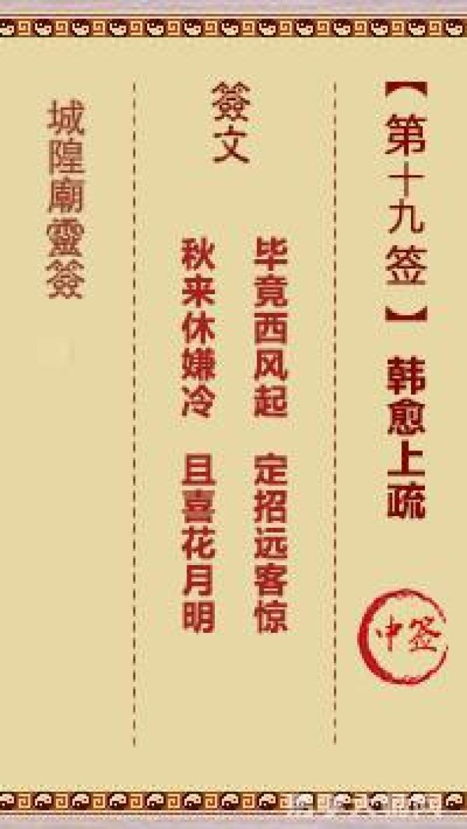 城隍庙灵签第十九签解签城隍爷灵签 第十九首 韩愈上疏 中签毕竟西风起,定招 ...