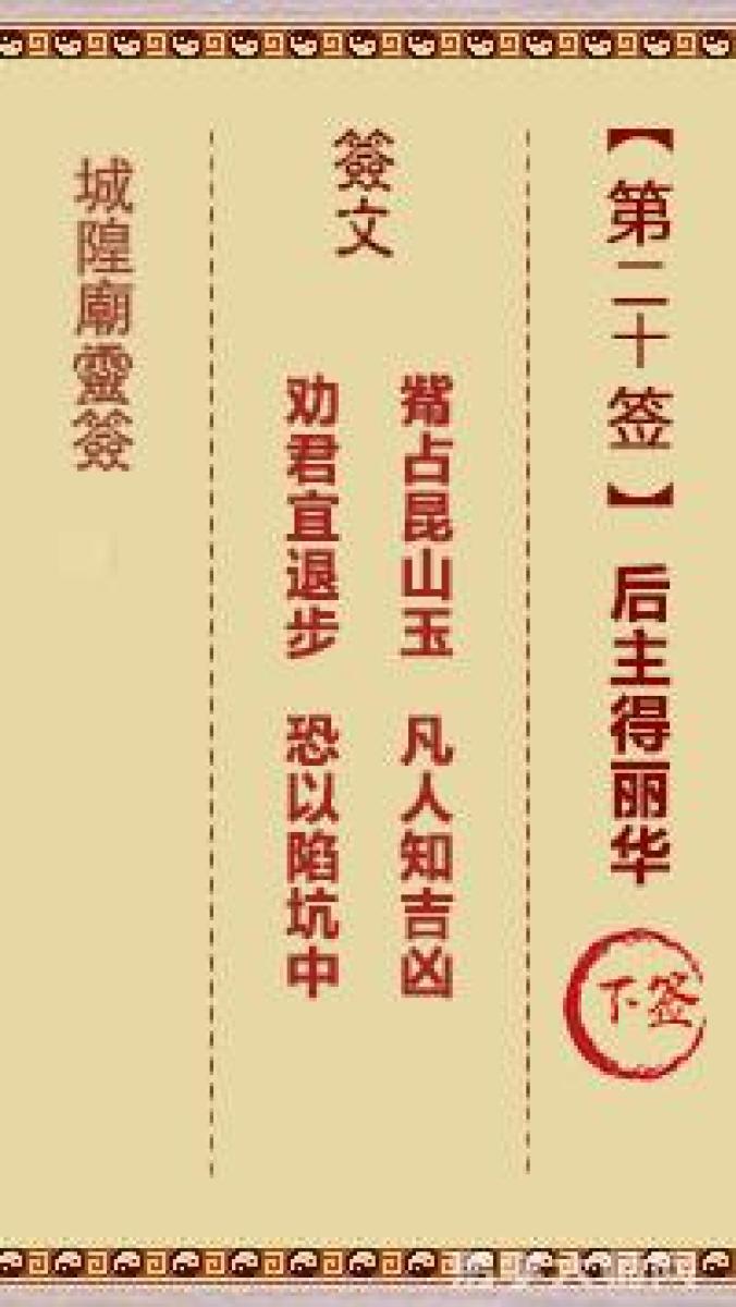 城隍庙灵签第二十签解签城隍爷灵签 第二十首 后主得丽华 下签觜占崑山玉,凡 ...