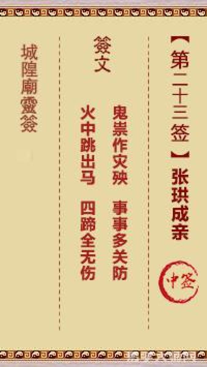 城隍庙灵签第二十三签解签城隍爷灵签 第廿三首 张珙成亲 中签鬼祟作灾殃,事 ...