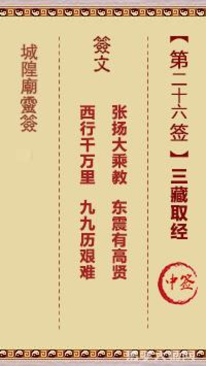 城隍庙灵签第二十六签解签城隍爷灵签 第廿六首 三藏取经 中签张扬大乘教,东 ...