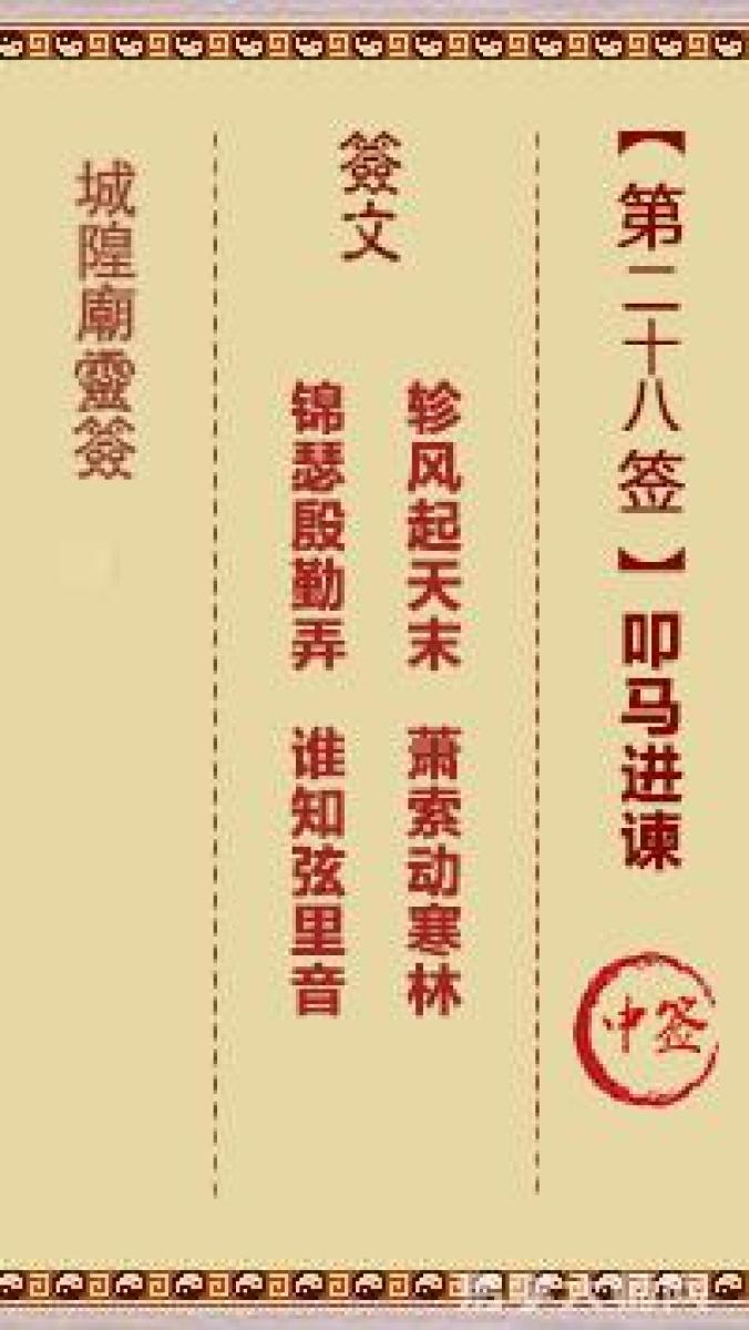 城隍庙灵签第二十八签解签城隍爷灵签 第廿八首 叩马进谏 中签轸风起天末,萧 ...