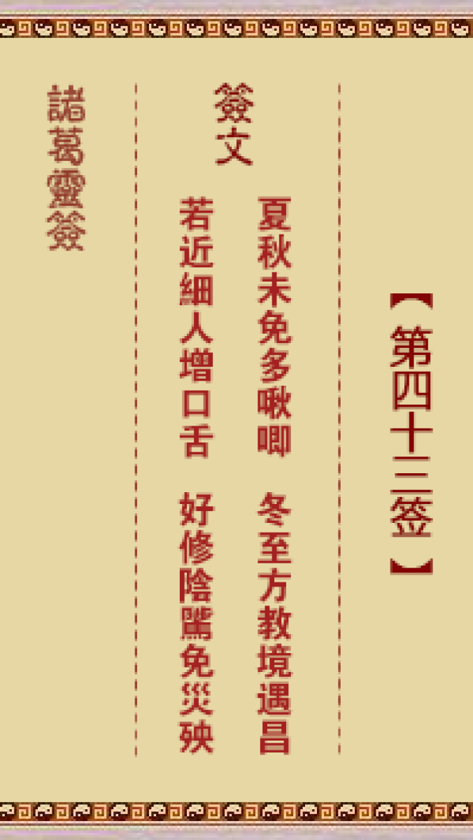 第四十二首。十分财喜到君家、从此谋为事事嘉、管取一生康且泰、春风看遍上 ...
