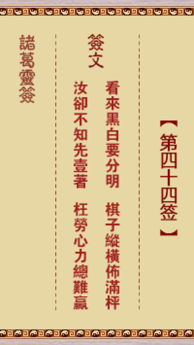 第四十四首。看来黑白要分明、棋子纵横布满枰、汝却不知先一着、枉劳心力总 ...