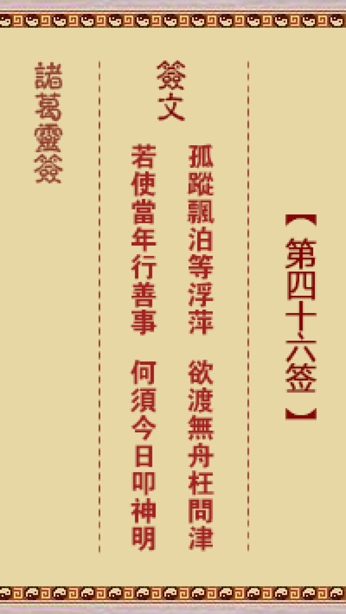第四十六首。孤踪飘泊等浮萍、欲渡无舟枉问津、若使当年行善事、何须今日叩 ...