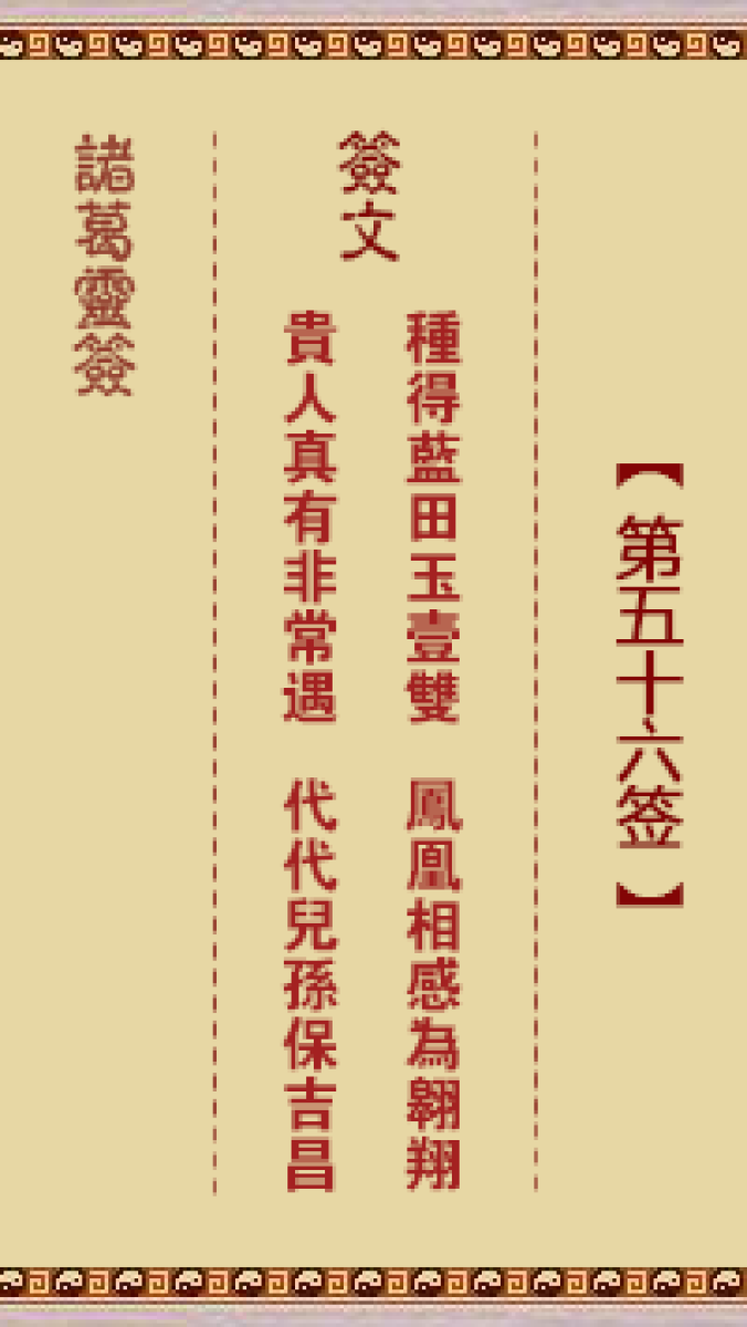 第五十六首。种得蓝田玉一双、凤凰相感为翱翔、贵人真有非常遇、代代儿孙保 ...