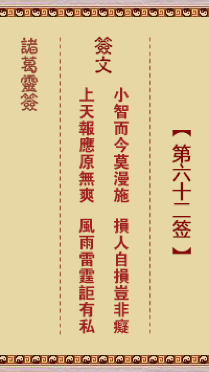 第六十六首。诡计阴谋日益精、神目如电雷霆惊、人有千算天一算、自作自受最 ...
