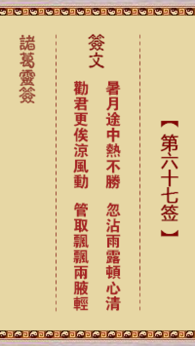 第六十七首。暑月途中热不胜、忽沾雨露顿心清、劝君更俟凉风动、管取飘飘两 ...