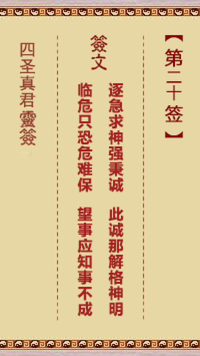 圣意云:人心怠慢,淫污渎神。占危厄险,占病沉吟。谋事难就,婚姻难成。独 ...