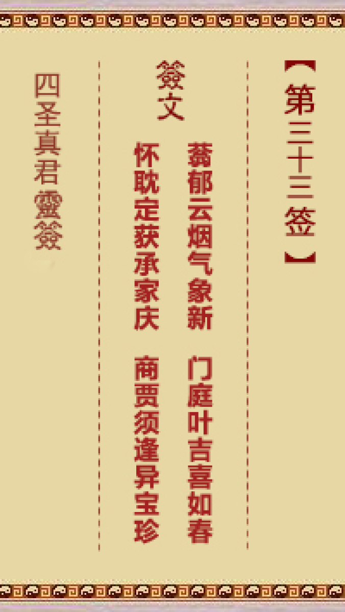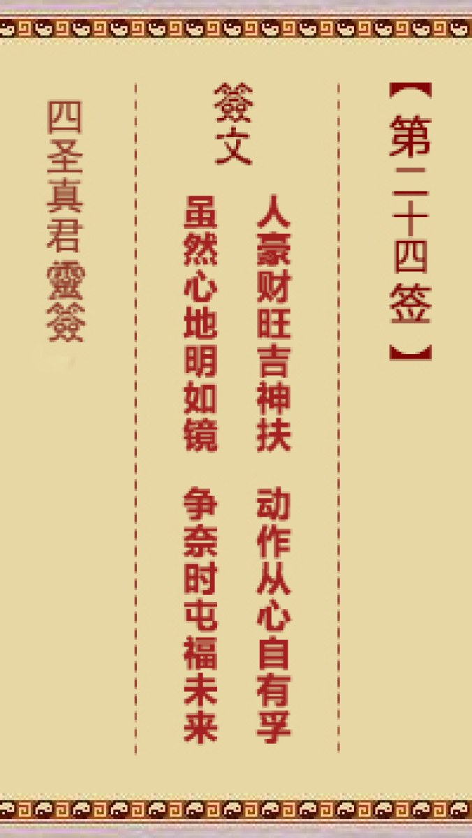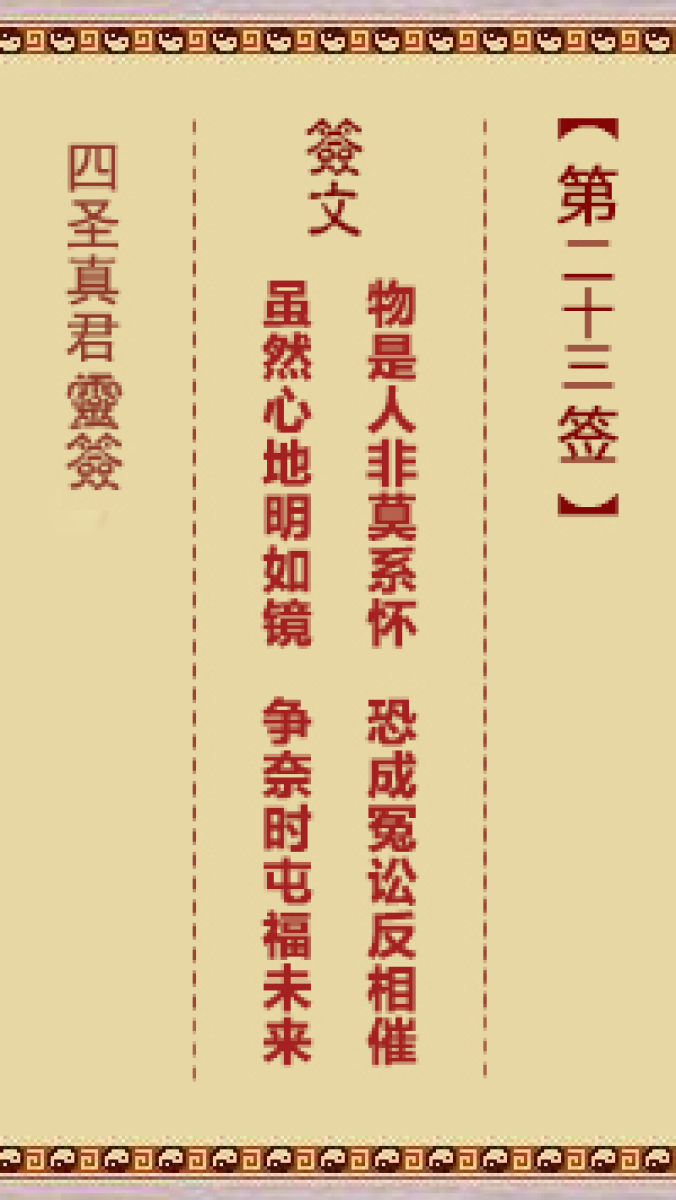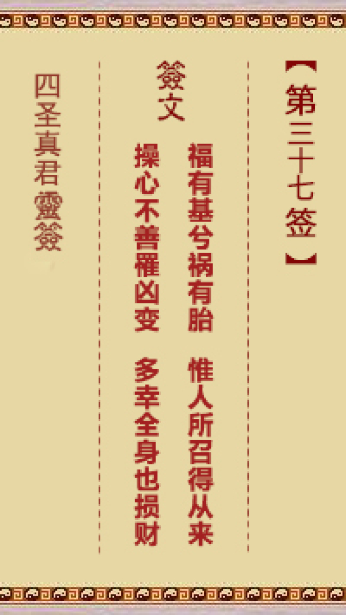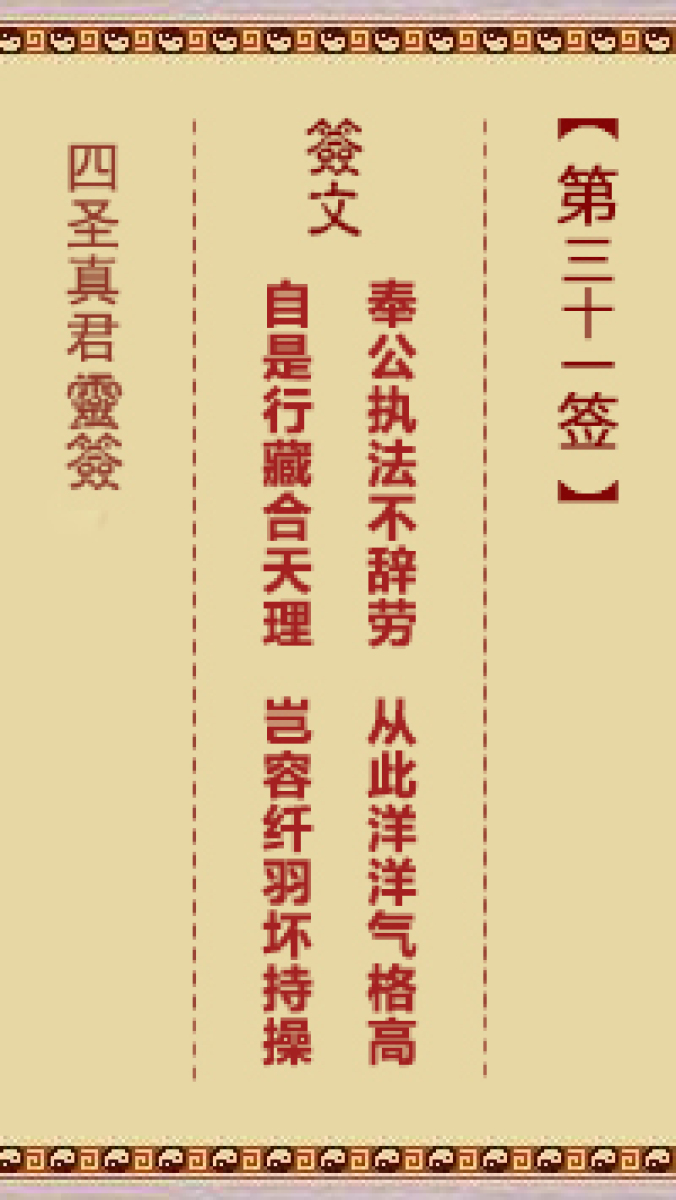 圣意云:为人公正,穷达如常。不介凶次,岂不余殃,行藏通泰,降福禳禳。吉 ...