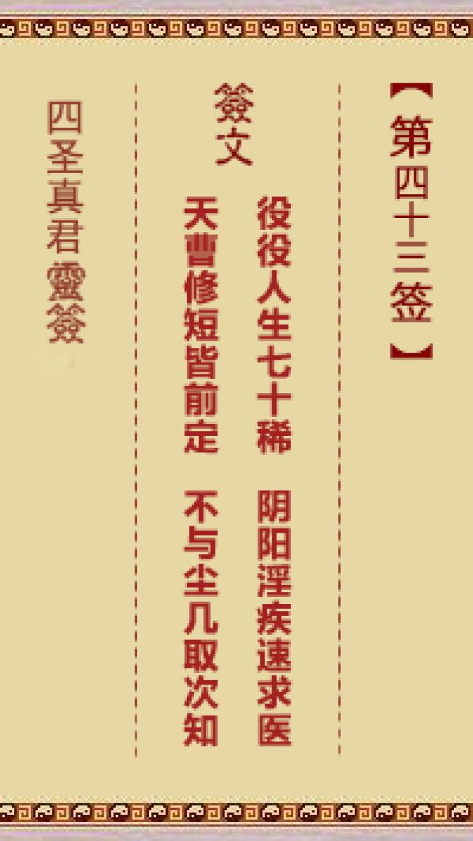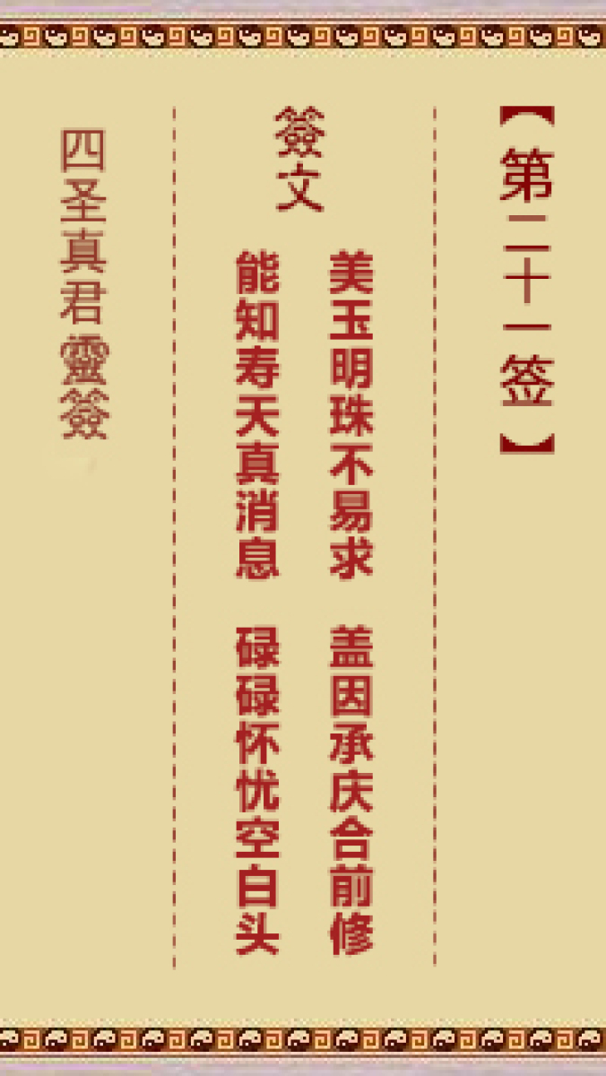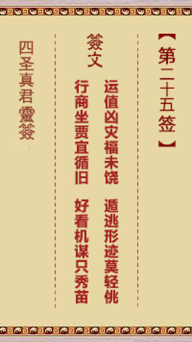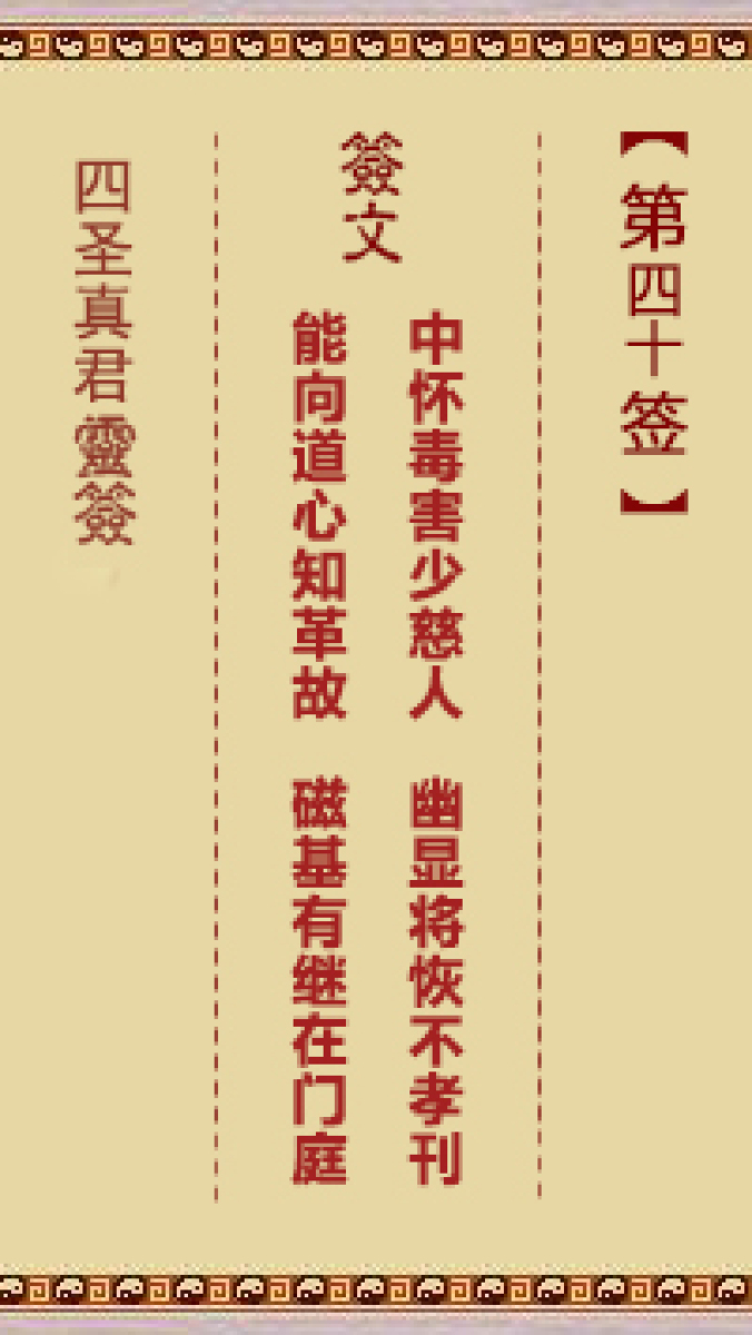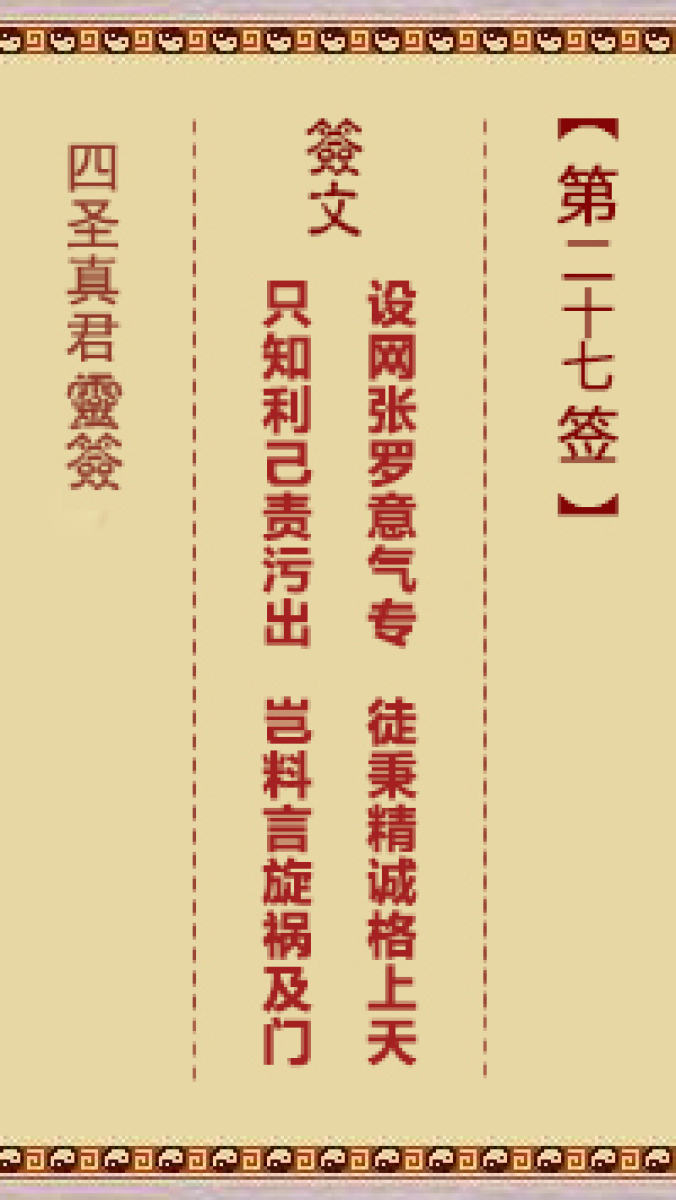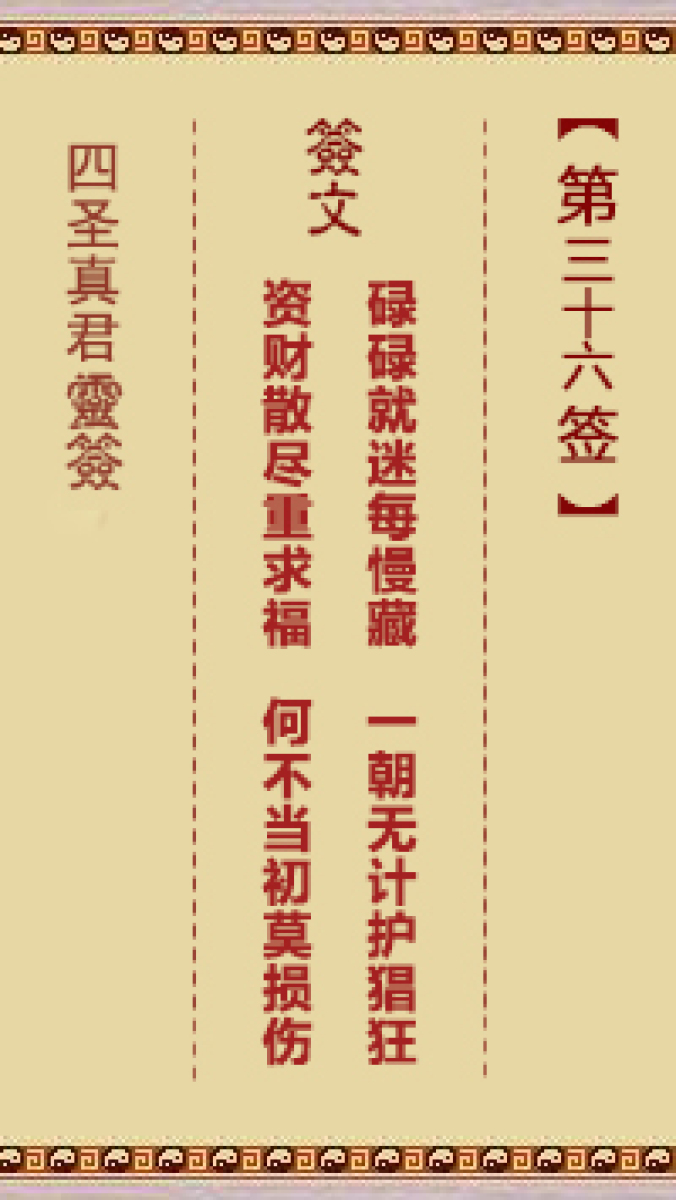 圣意云:为人公正,穷达如常。不介凶次,岂不余殃,行藏通泰,降福禳禳。吉 ...