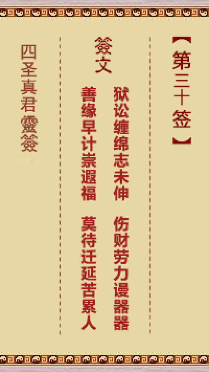 圣意云:缠绵狱讼,失致伤财。更宜作善,兔致凶灾。谋望不就,婚姻失倍。百 ...