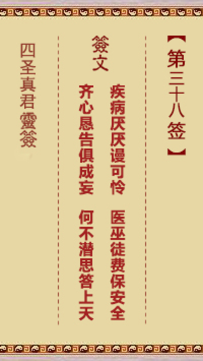 圣意云:灾祸缠绵,岂料其源。净愿不还,难保安全。医巫造说,浪费其钱。速 ...
